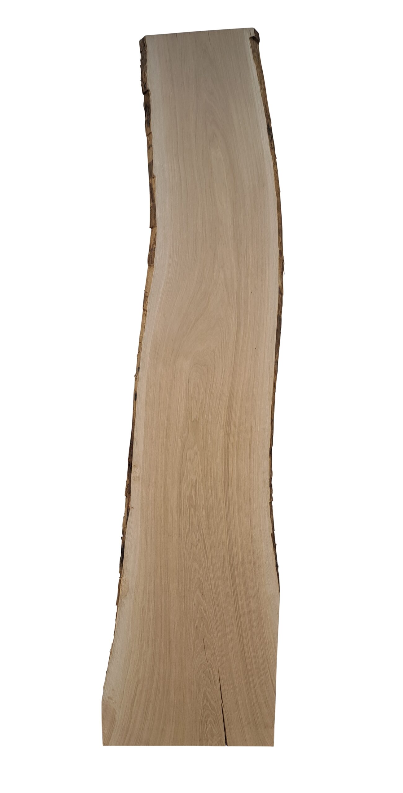 Dit schaaldeel van Europees eiken is aan twee zijden geschaafd. De zijkanten van het schaaldeel zijn niet gezaagd en behouden hun schors en natuurlijke vorm.