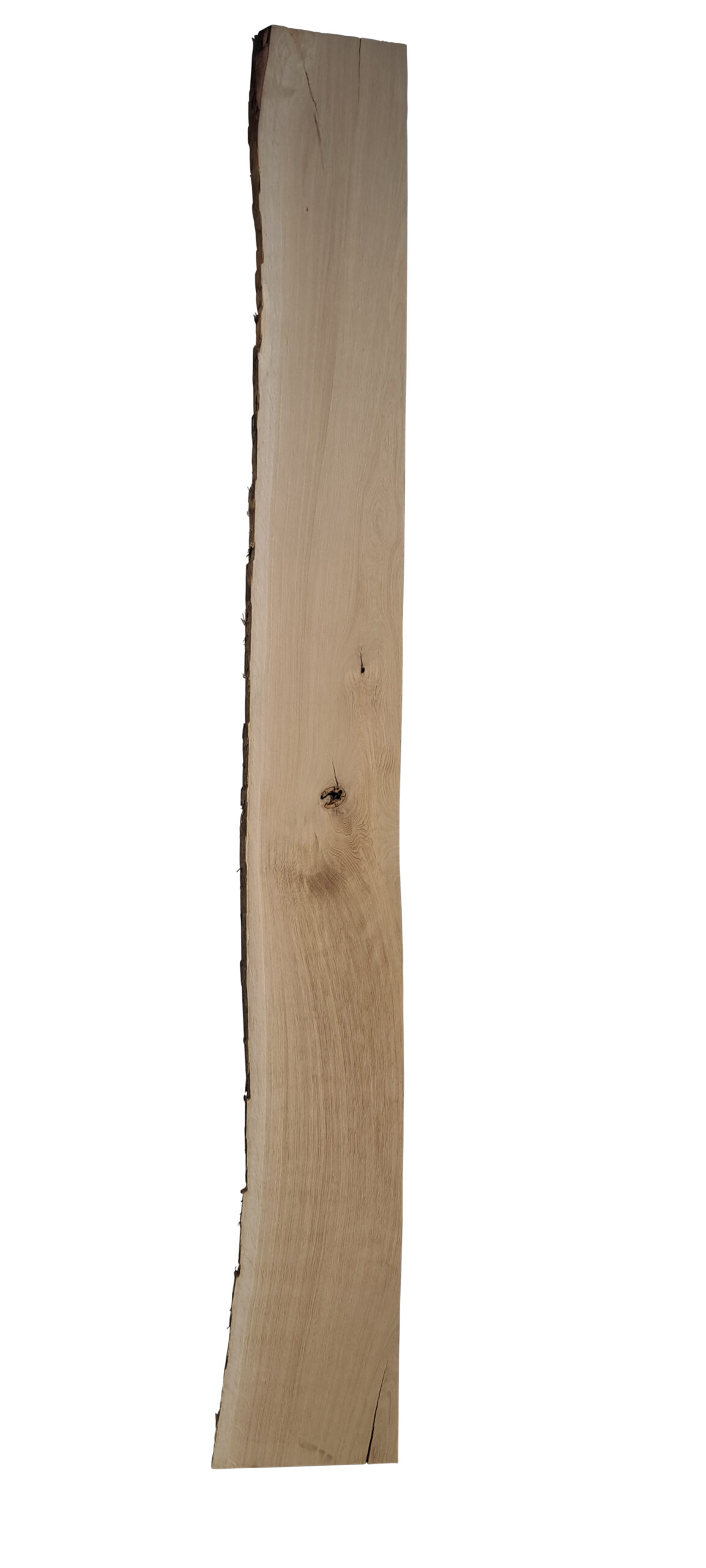 Dit schaaldeel van Europees eiken is aan twee zijden geschaafd. De zijkanten van het schaaldeel zijn niet gezaagd en behouden hun schors en natuurlijke vorm.